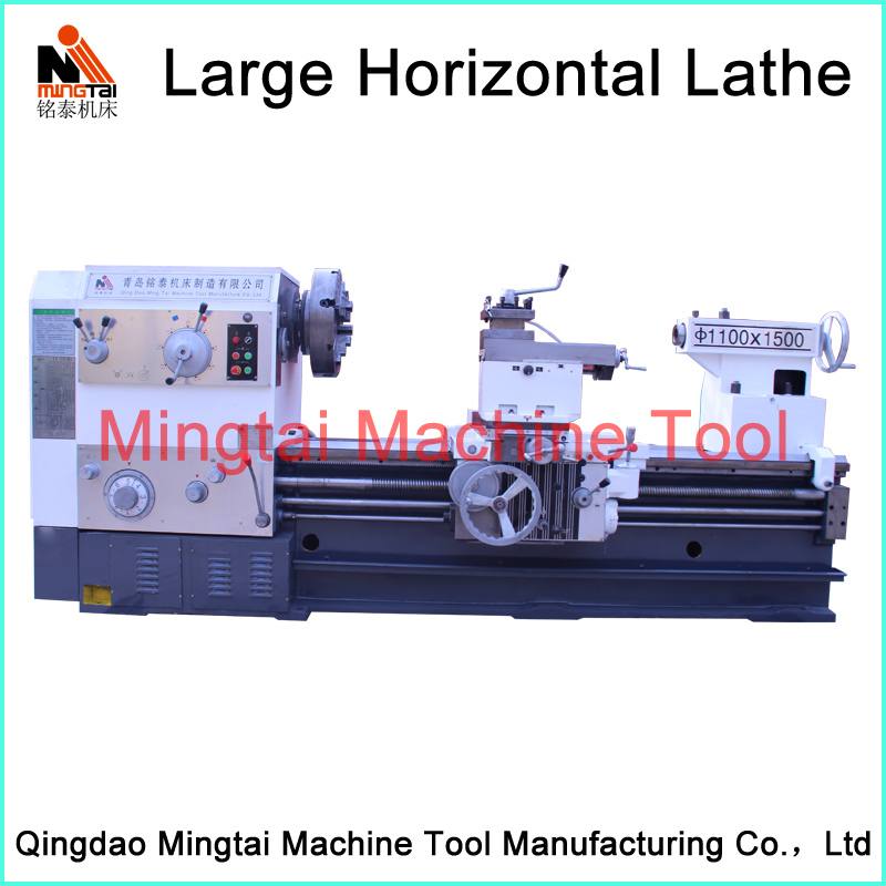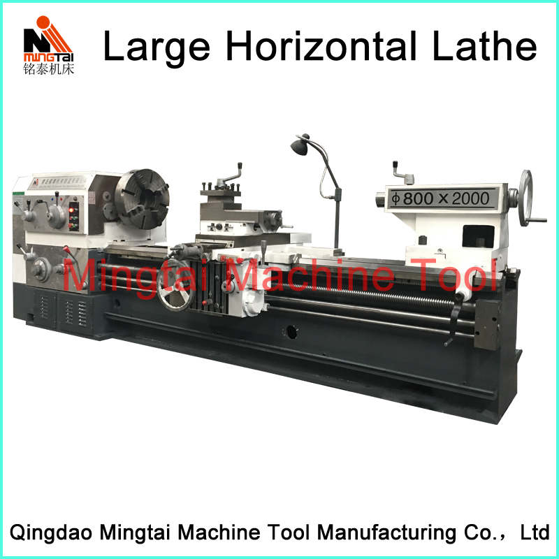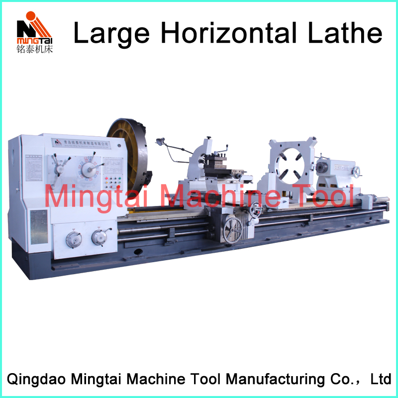 Large horizontal lathe machine series are mainly used for turning not only the end face, ex-circle surface, but also the conical surface of various work-pieces. This machine adopts three supporting structure with good rigidity. Designing flexible lateral chip removal system with good performance. This machine is equipped with separate oil pump with excellent lubrication. The tailstock movement adopts mechanical device with reasonable rotation speed, feed rate and power. This kind of lathe has high rigidity, efficiency, energy-saving, easy operation and attractive appearance.