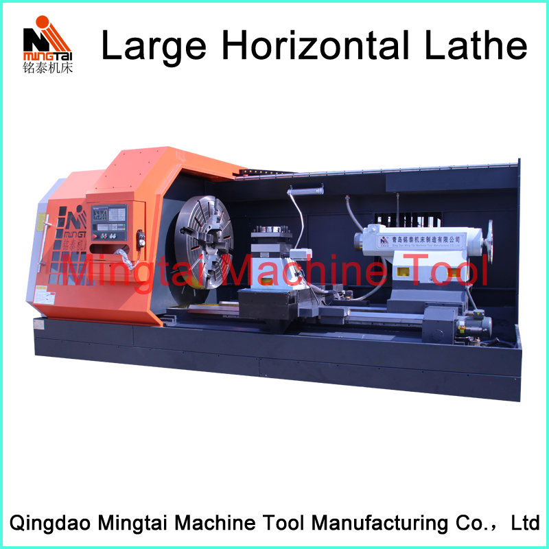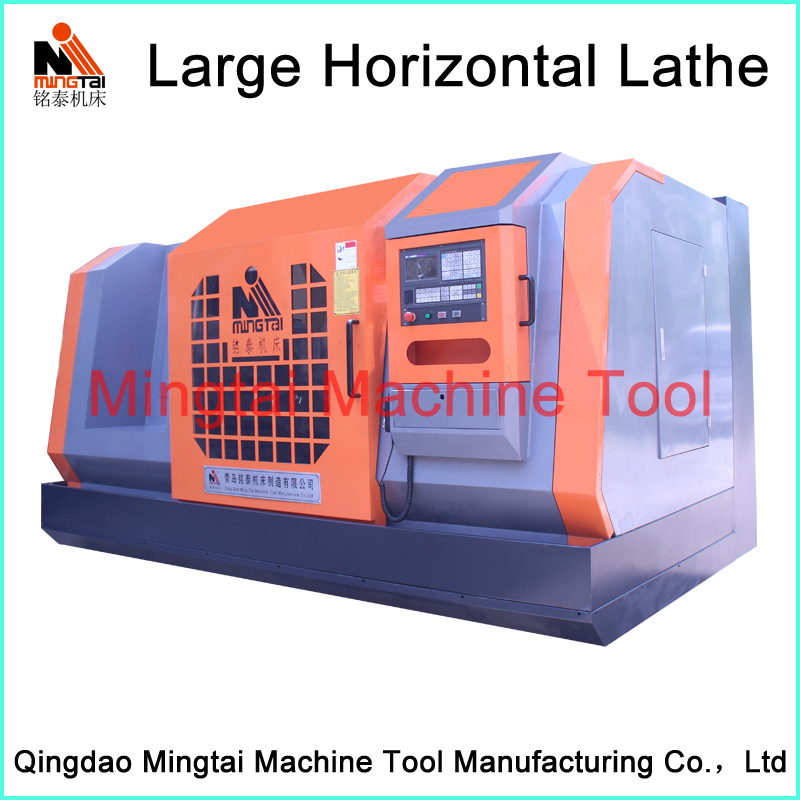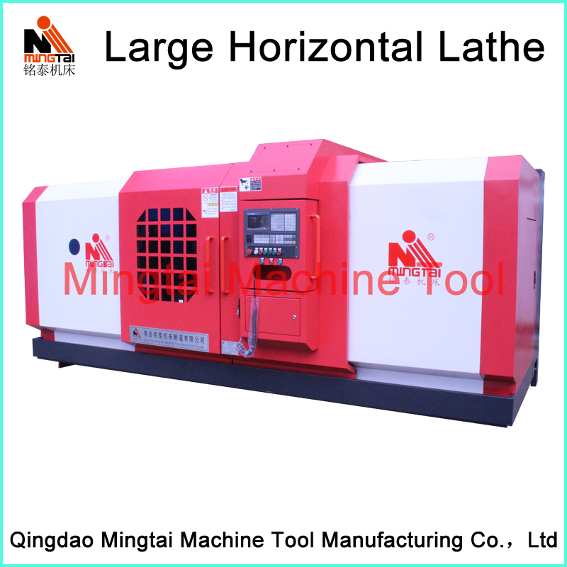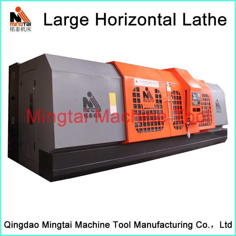 Large horizontal lathe machine series are mainly used for turning not only the end face, ex-circle surface, but also the conical surface of various work-pieces. This machine adopts three supporting structure with good rigidity. Designing flexible lateral chip removal system with good performance. This machine is equipped with separate oil pump with excellent lubrication. The tailstock movement adopts mechanical device with reasonable rotation speed, feed rate and power. This kind of lathe has high rigidity, efficiency, energy-saving, easy operation and attractive appearance.